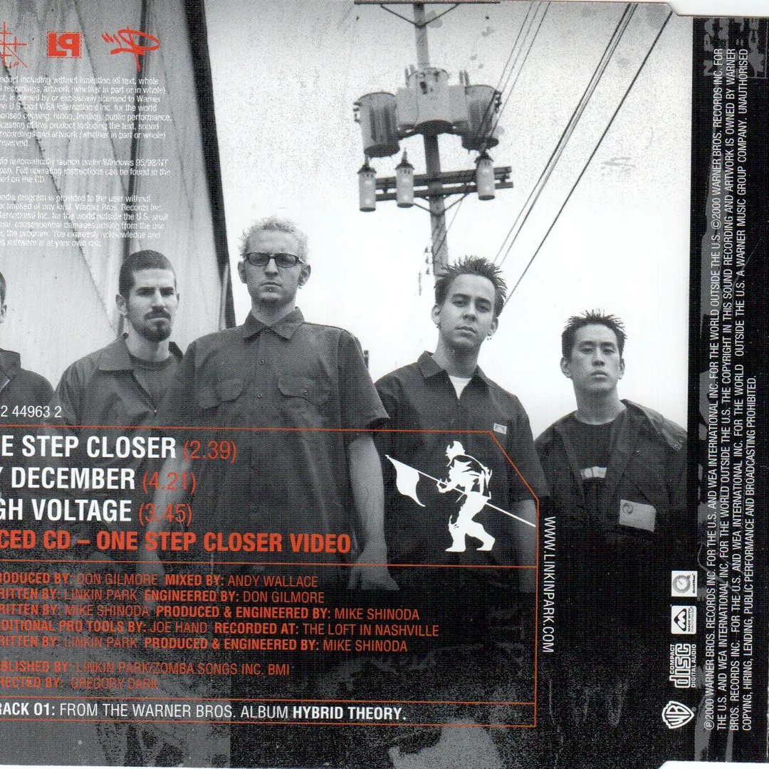 "One Step Closer" is the debut single by American rock band Linkin Park, released from their debut album "Hybrid Theory." The song features a nu-metal style with themes of frustration and anger.
