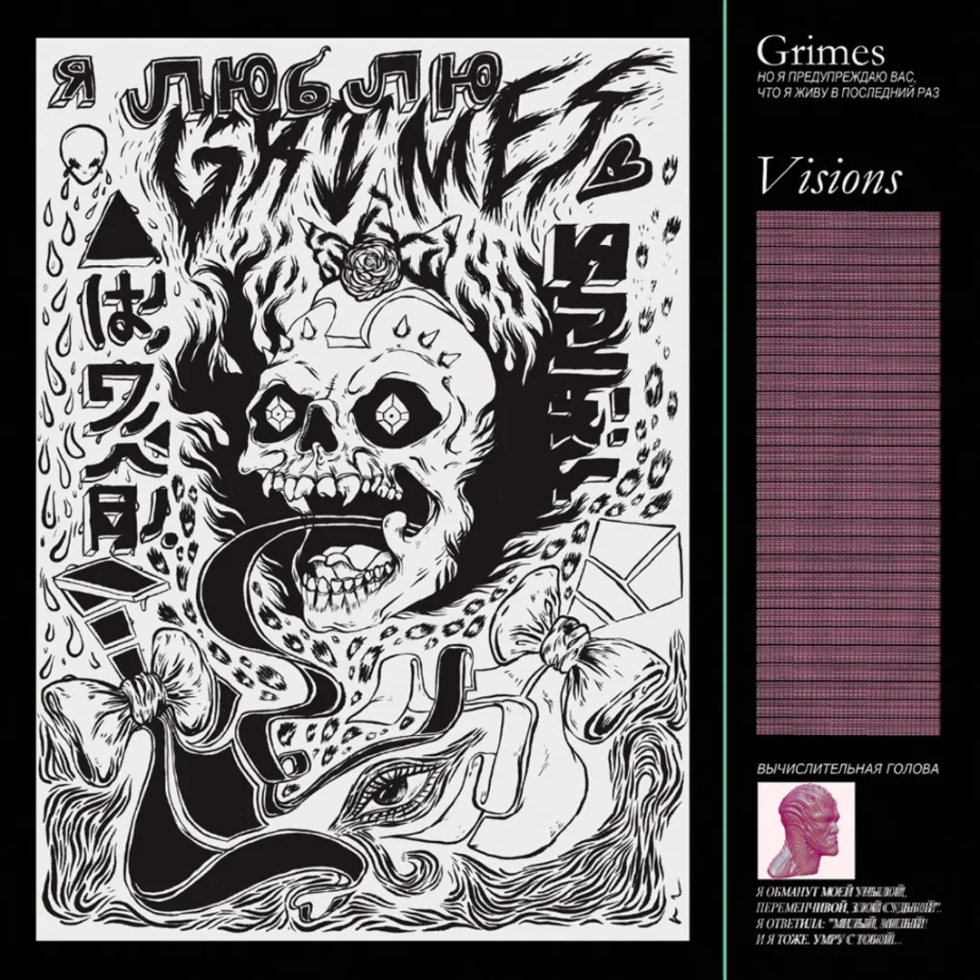 "Visions" by Grimes is an album that blends elements of electronic, dream pop, and synth-pop, characterised by ethereal vocals and experimental production. It explores themes of technology, identity, and the future.