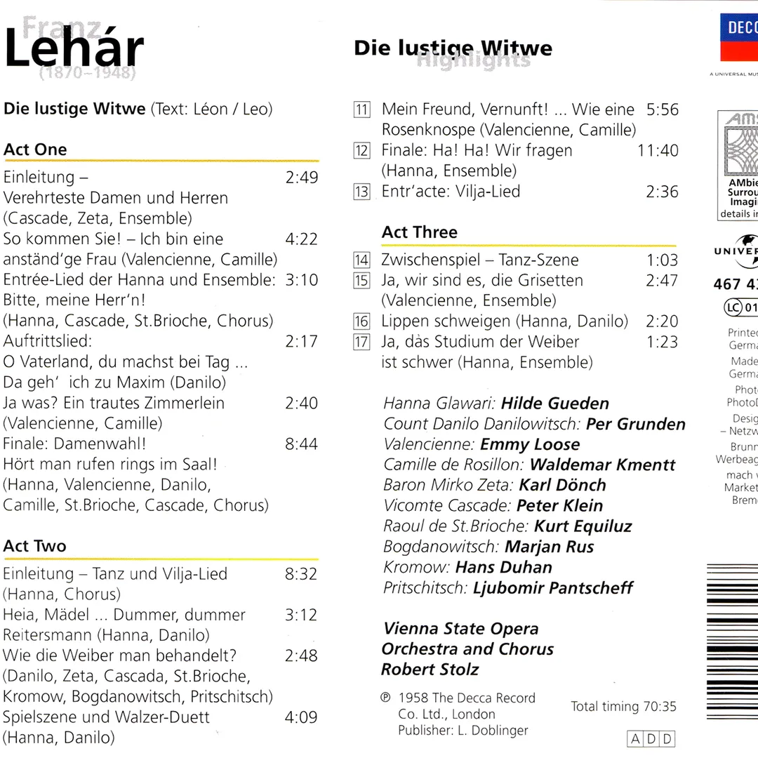 - 6.Die lustige Witwe: Akt I. Finale: Damenwahl! Hört man rufen rings im Saal! (Hanna, Valencienne, Danilo, Camille, St. Brioche, Cascada & chorus)8:44