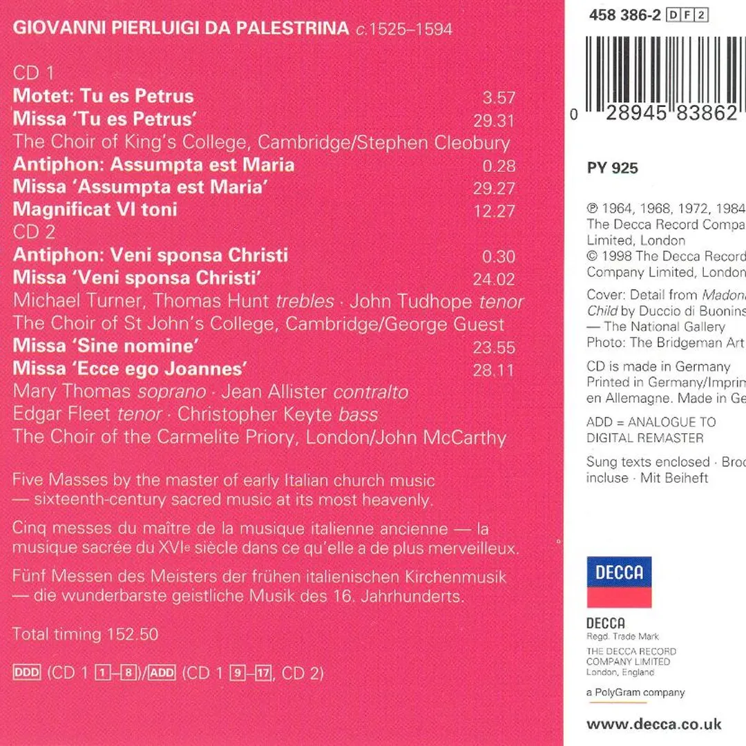 - 4.Missa Veni sponsa Christi, for 4 voices (from Masses Book IX): 3. Gloria3:53