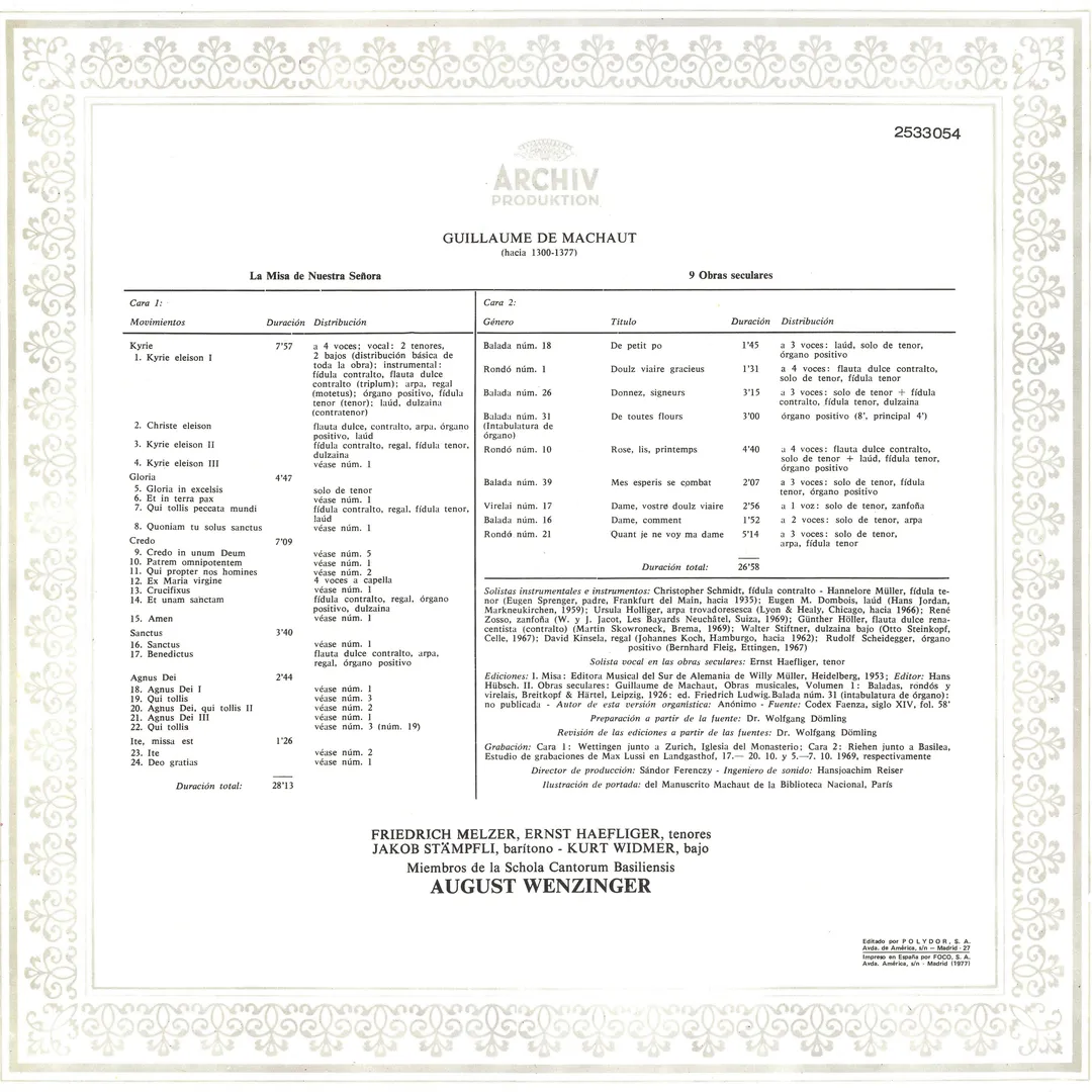 Album by Guillaume de Machaut & Schola Cantorum Basiliensis & August Wenzinger & Friedreich Melzer & Ernst Haefliger & Prof. Jakob Stämpfli & Kurt Widmer