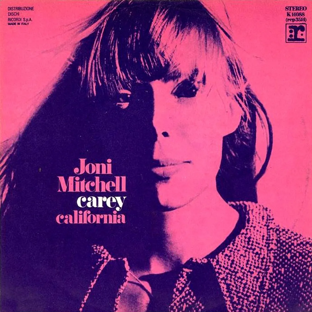Joni Mitchell's single "Carey" is a folk rock song from her 1971 album "Blue," featuring themes of travel and personal reflection.